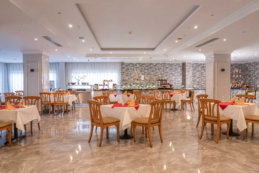 RISTORAZIONE: trattamento in Hard All Inclusive. La ristorazione è un piacevole viaggio tra i sapori. Gli ospiti possono gustare un’ampia selezione di esperienze culinarie nei nostri vivaci punti di ristoro, tra cui un ristorante a buffet internazionale, un buffet italiano e tre ristoranti à la carte con menu fisso, il tutto accompagnato da una varietà di bar accoglienti. Che abbiate voglia delle spezie ricche del Medio Oriente, dei comfort food della tradizione italiana o dei grandi classici internazionali dall’Europa all’Asia, le nostre proposte variegate soddisfano ogni palato.